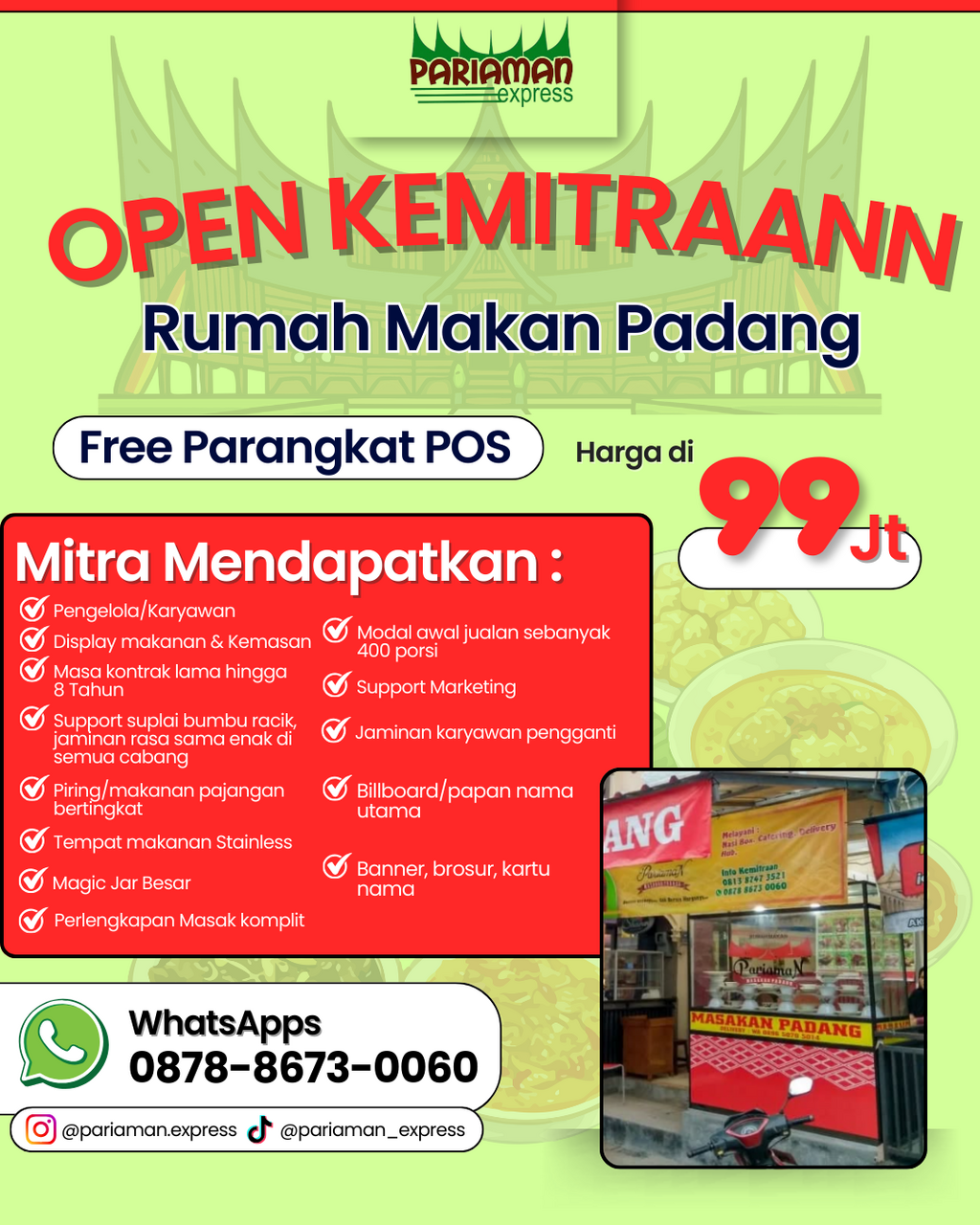 Dapatkan rasa Padang yang konsisten di setiap cabang dengan sistem kemitraan yang sudah teruji